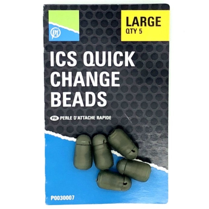 Quick Change Beads sunt bilute de cauciuc special concepute pentru schimbarea rapida a rigului, utilizate in pescuitul la feeder sau cu method feeder. Accesoriile au dublu rol: schimbarea rapida a rigului si absortia socului provocat de aruncari. Pot fi folosite cu method feedere elastice sau cu momitoare inline.