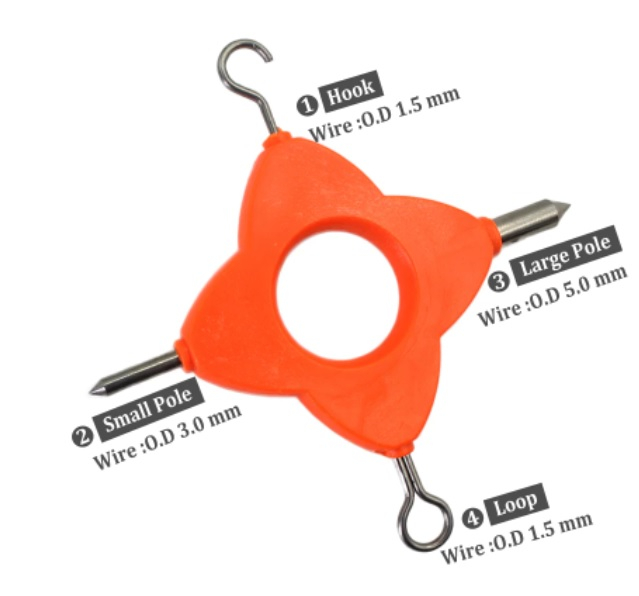 DISPOZITIVUL MULTIFUNCTIONAL FL, MULTI PULLER TOOL este un accesoriu cu 4 functii diferite, foarte utile in realizarea monturilor si nu numai. "Loop" este o ustensila ideala pentru a trage nodul pe carlige, "Hook" are rolul de a sustine/fixa vartejurile si inelele, "Small Pole" formeaza bucle perfecte pentru monturile D-Rig si Chod, iar "Large Pole" realizeaza bucle perfecte pentru monturi semi-rigide si bucle mici atunci cand crosetati leadcore-ul si firele lead free pentru legat carlige.