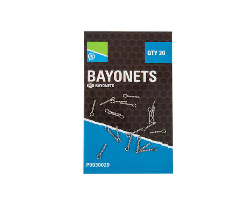 Preston Bayonets reprezinta solutia ideala pentru atasarea momelilor pe monturile dedicate pescuitului la feeder. Acesta poate fi utilizat cu o gama larga de momeli moi. Sunt confectionati din otel inoxidabil, beneficiind de o rezistenta exceptionala la uzura.